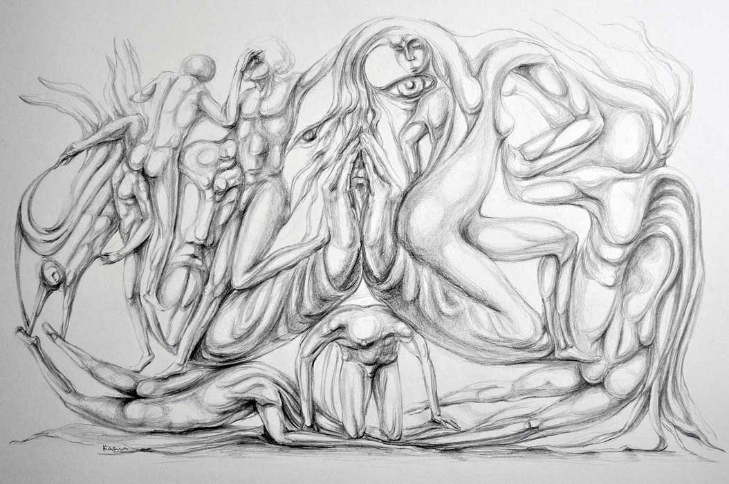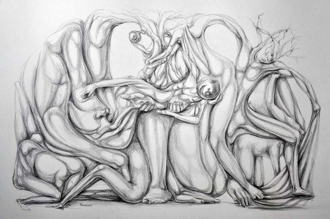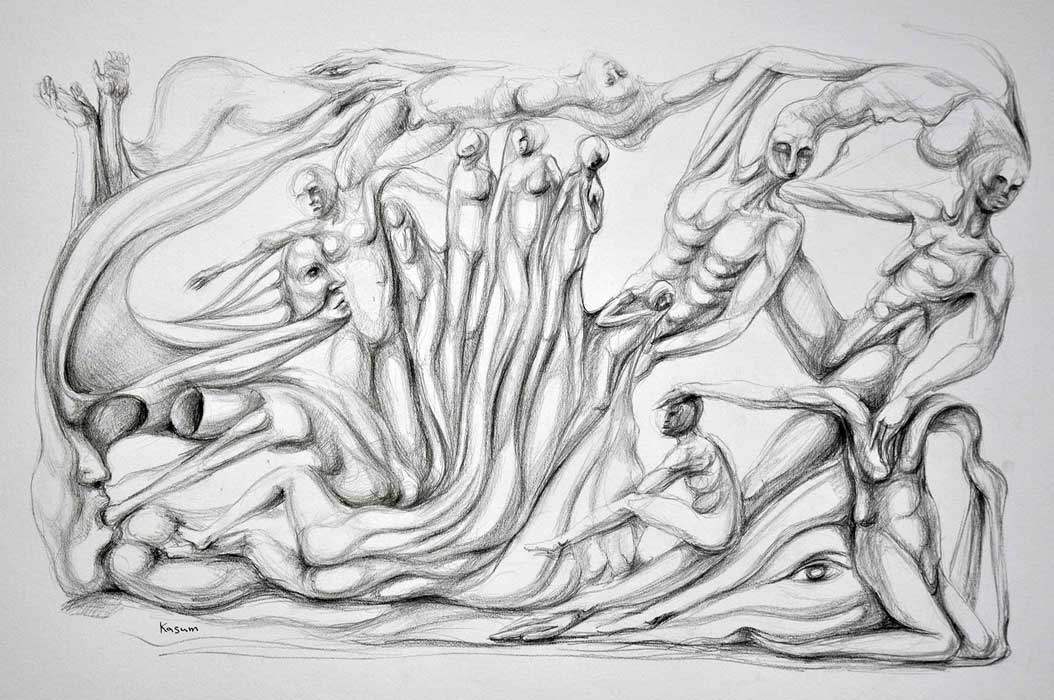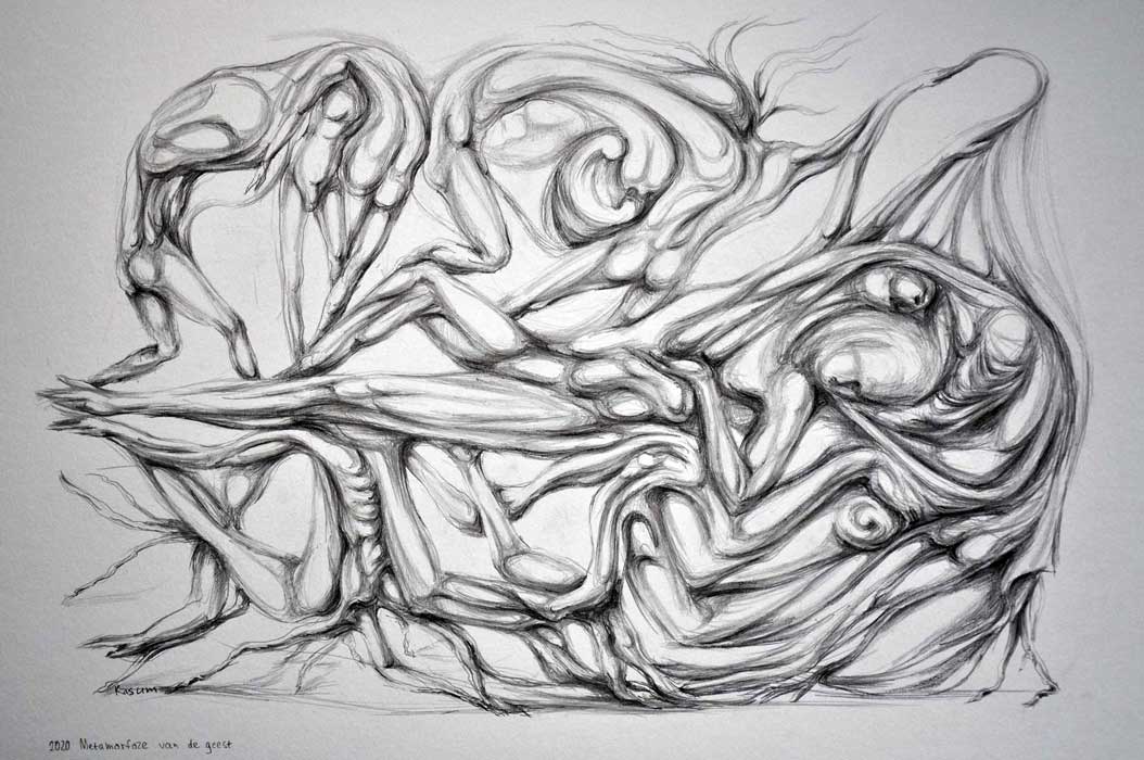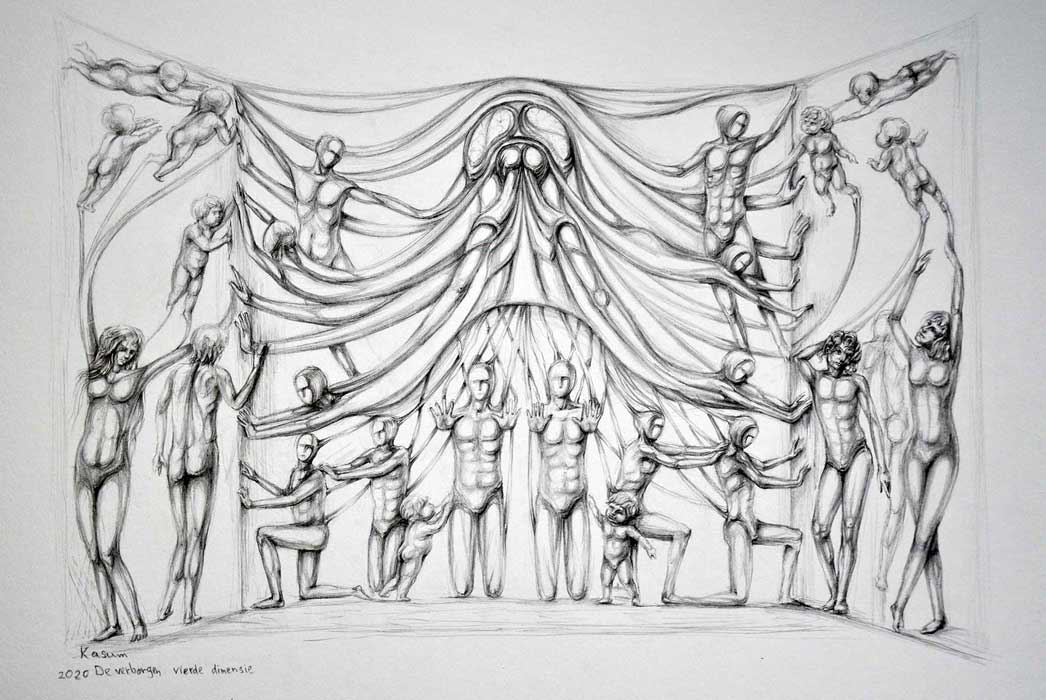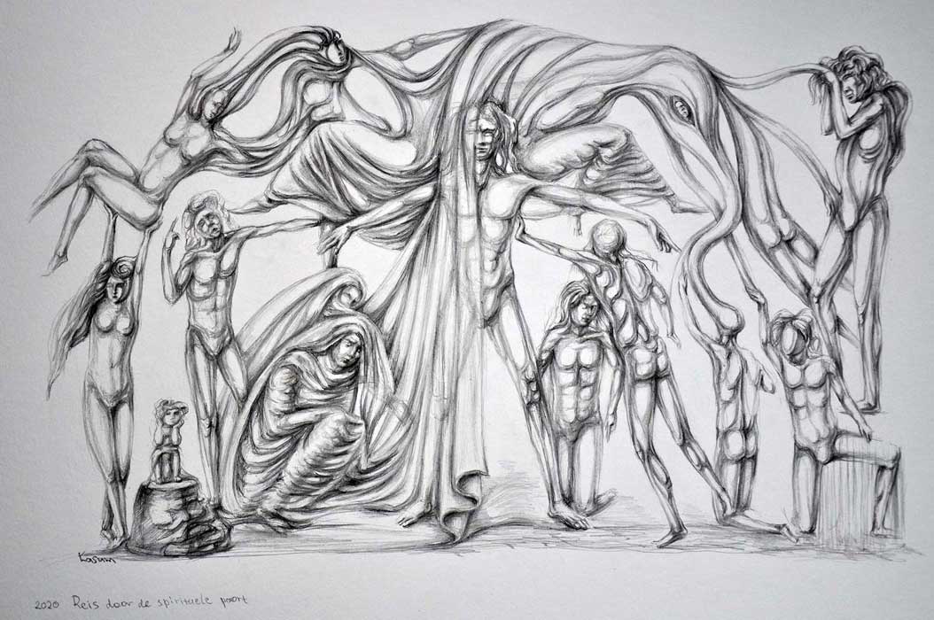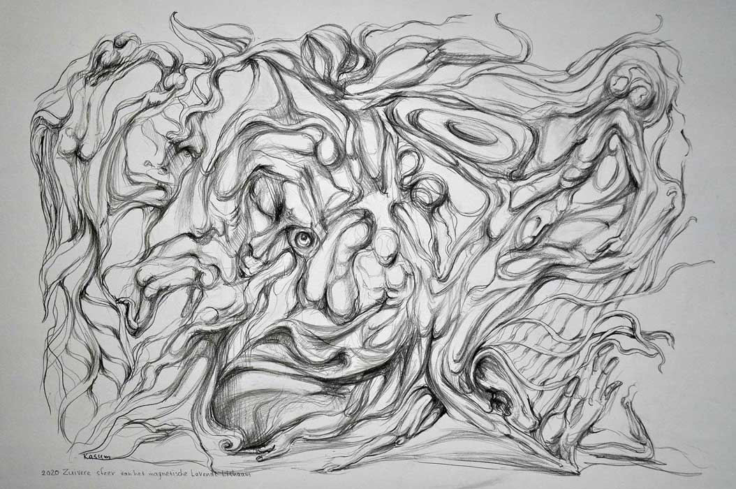 Een wereld waarin er contact is tussen me en surrealistische levenswijsheid die ik in tekeningen wil reflecteren.