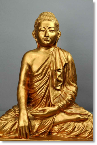 De rechterhand van Boeddha-beeld wijst naar beneden, dat betekent: Aarde. En de linkerhand wijst naar boven, dat betekent: verbinding maken met de kosmos. Deze Boeddha-beeld kunt u gebruiken bij het mediteren of om gewoon naar te kijken. Want dit beeld straalt rust en kalmte uit.